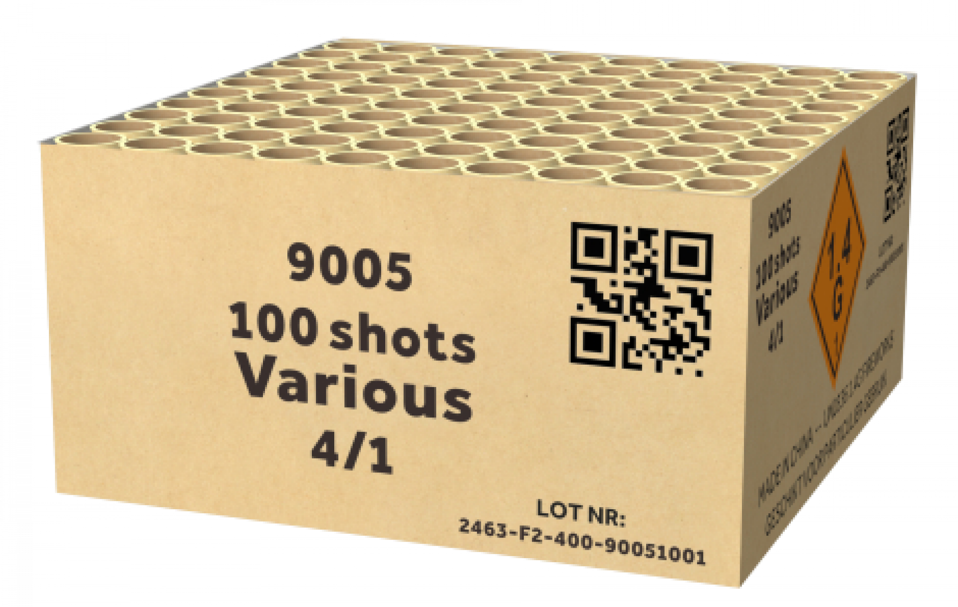Een prijs-kwaliteits topper! De 100 shots Various bevat 100 schoten met werkelijk waar te veel effecten om op te noemen. Verschillende afvuur snelheden en een knallende finale!